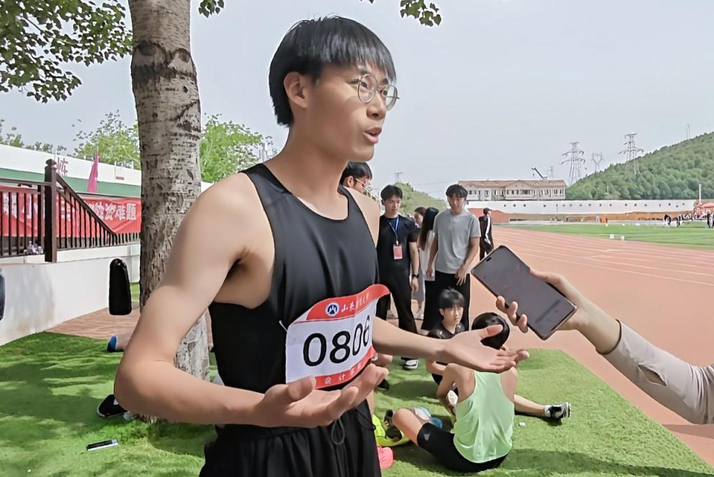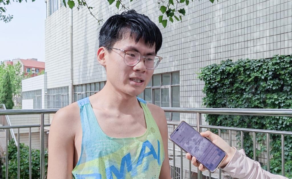 男子3000米运动员石嘉伟为比赛准备了两个月,赛前一周大腿严重受伤,原本打算弃赛。但看到学弟学妹们拼搏奋斗受到了极大的鼓舞,今天坚持参赛,最后一圈他咬牙顶住,取得了第一名的好成绩。
