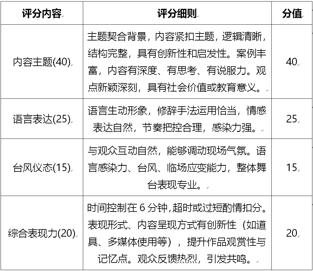 2.节目形式:学院初步评选后报送1个参赛作品,以诗歌朗诵为核心表现形式,鼓励创新表演形式,融入歌唱表演、音乐剧等形式,增强表现力和感染力;鼓励教师参加,与学生同台表演;表演时长控制在6分钟内。