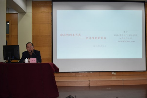 2019年3月13日下午,江西财经大学李宁教授应MG电子 邀请,在燕山校区第三报告厅作题为《掀起你的盖头来—会计准则的背后》的学术报告。讲座由韩跃副教授主持,2018级部分硕士研究生到场聆听。