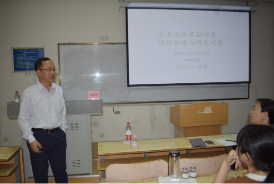2019年5月10日下午,南开大学刘志远教授应MG电子 邀请,在燕山校区逸夫楼Y206作题为《企业风险承担研究:理论演进与研究进展》的学术报告。讲座由孙文刚副院长主持,MG电子 部分老师以及2018级部分硕士研究生聆听了讲座。刘志远教授是中国会计学会理事、中国注册会计师协会理事、中国会计教授会理事,在风险研究领域有很高的学术造诣。