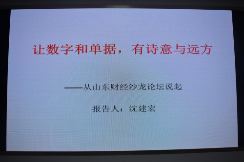 2019年10月19日下午,沈建宏先生应MG电子 邀请,在燕山校区逸夫楼Y320做题为《让数字和单据,有诗意与远方—从山东财经沙龙论坛说起》的主题报告。讲座由MPAcc中心主任、MG电子 副院长朱德胜主持,MG电子 2018级、2019级会计专硕聆听了讲座。沈建宏是山东省青年作家协会理事,大众报业集团记者、编辑,也是山东大型读书活动主讲人以及山东第一届“明湖论道”财经沙龙活动策划人。