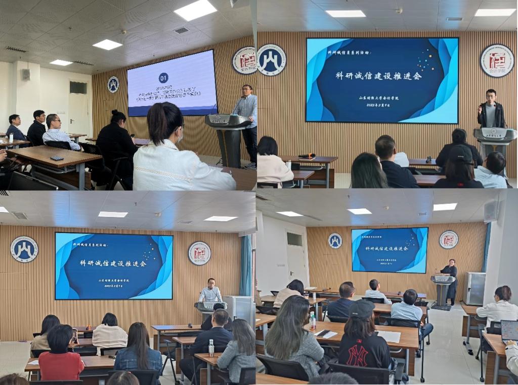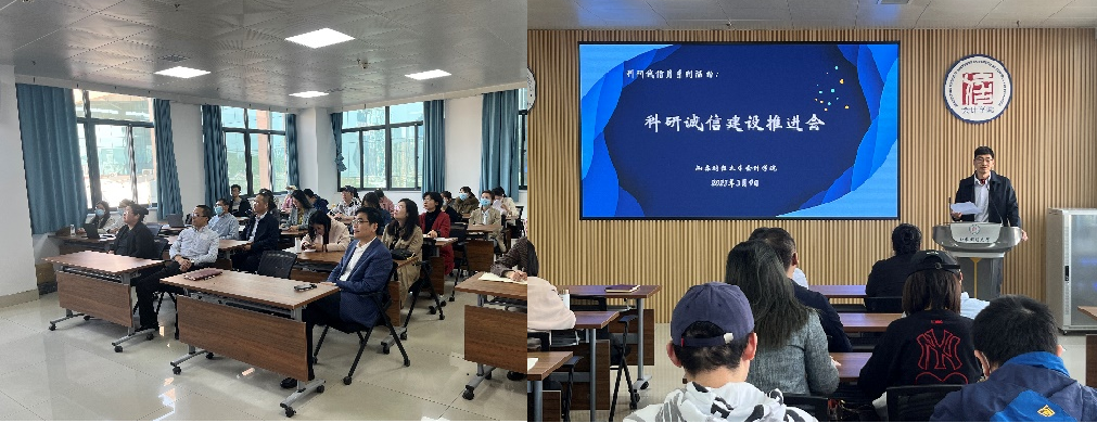 为深入贯彻党的二十大精神,落实党中央、国务院关于科研诚信和学风建设工作有关部署以及教育部、 教育厅各项要求,按照学校科研诚信专项整治活动相关部署,做好“科研诚信宣传教育主题活动月”各项工作,MG电子 于3月9日举办了“科研诚信建设推进会”。院长葛永波、各系主任、各教工党支部书记、专任教师、学生辅导员、研究生、本科生40余人参加,副院长吴大新主持会议。