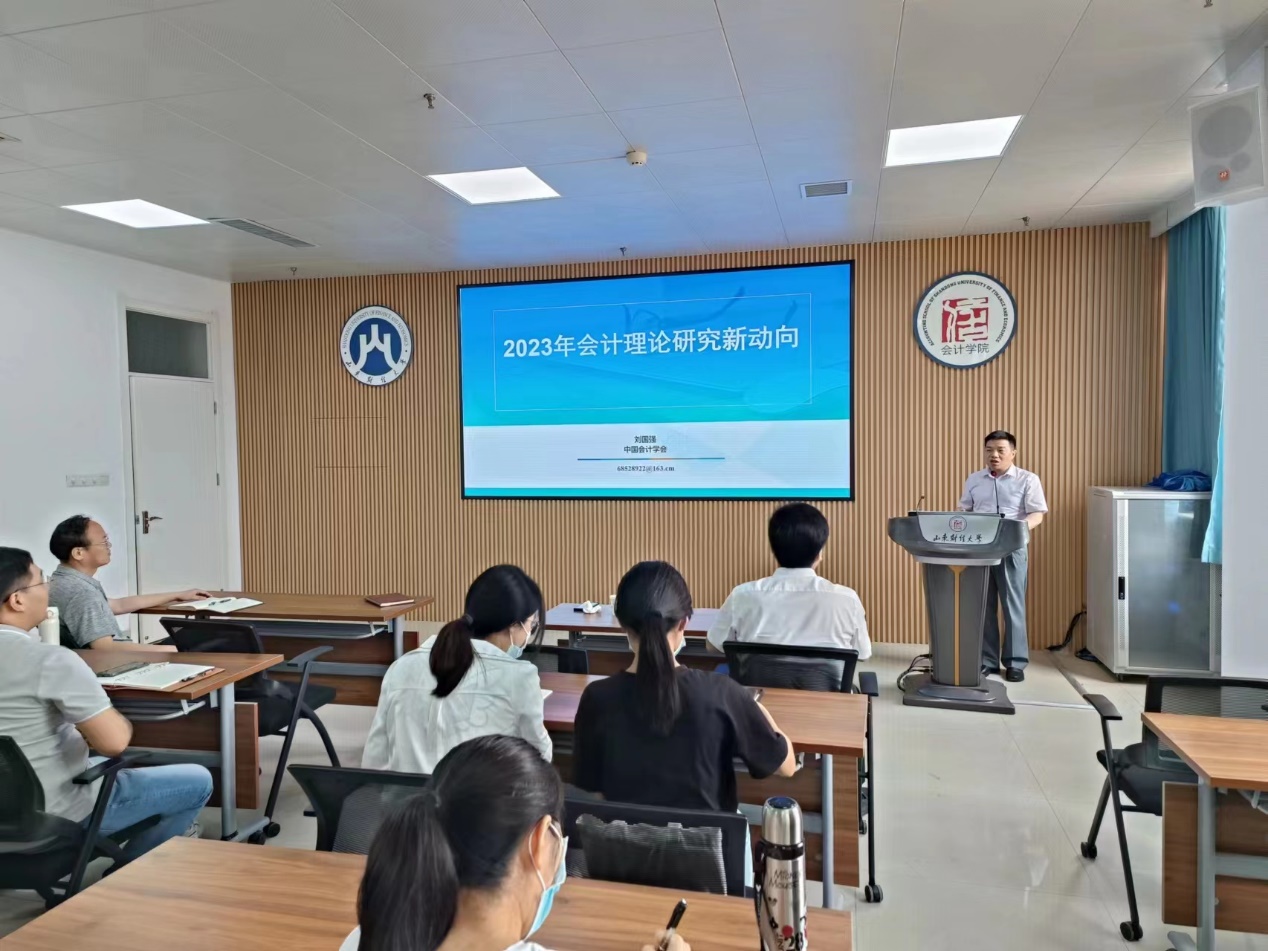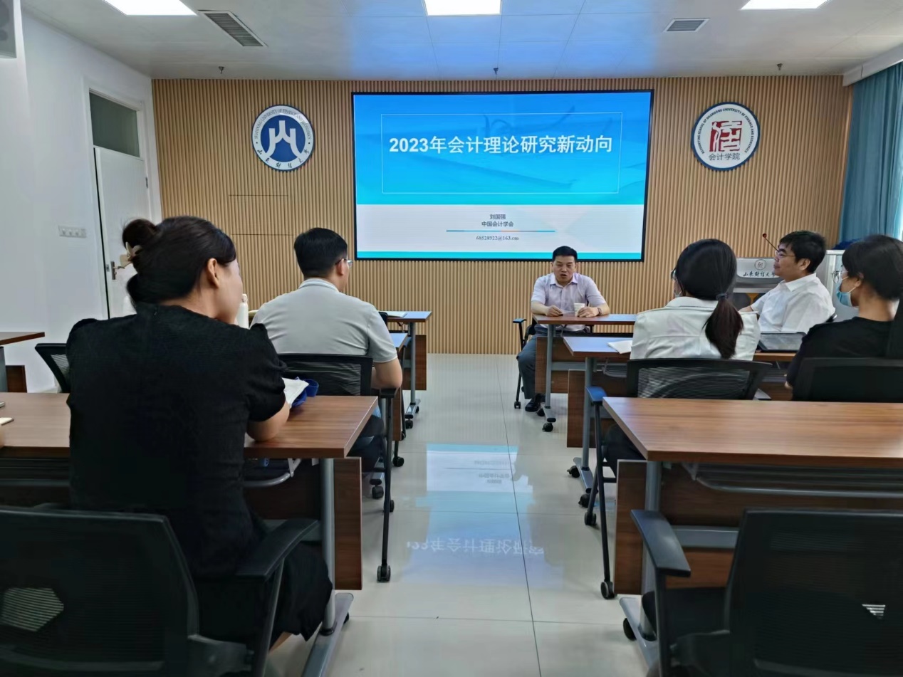 6月3日下午,中国会计学会副秘书长、《会计研究》编辑部主任、编审刘国强博士做客MG电子 “名人·名家”学术大讲堂,为师生们作了“2023年会计理论研究新动向”的专题讲座。讲座由副院长吴大新教授主持,院长葛永波教授、副院长王守海教授、学院青年科研骨干及全体博士研究生到场聆听讲座。