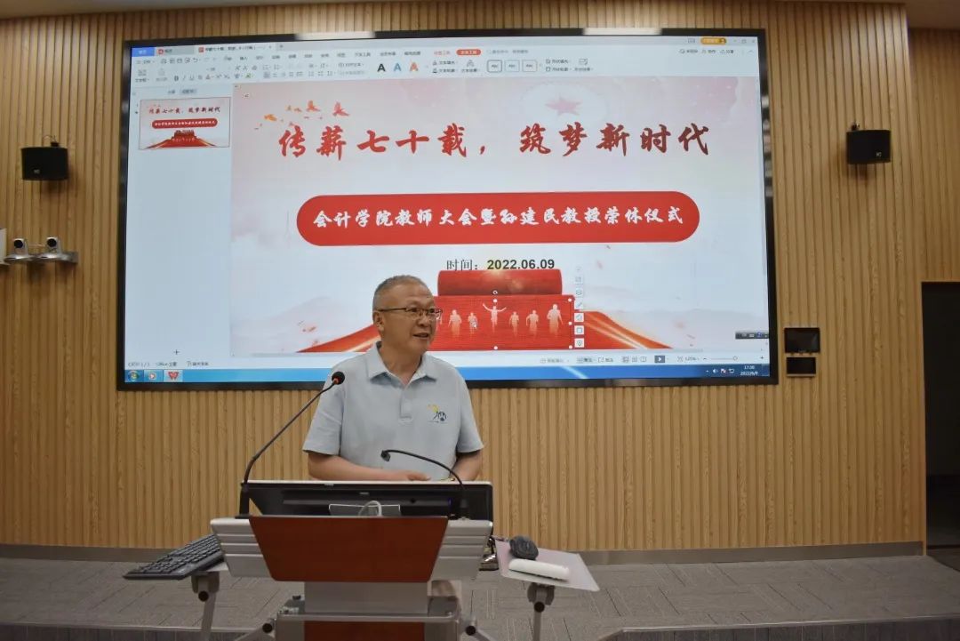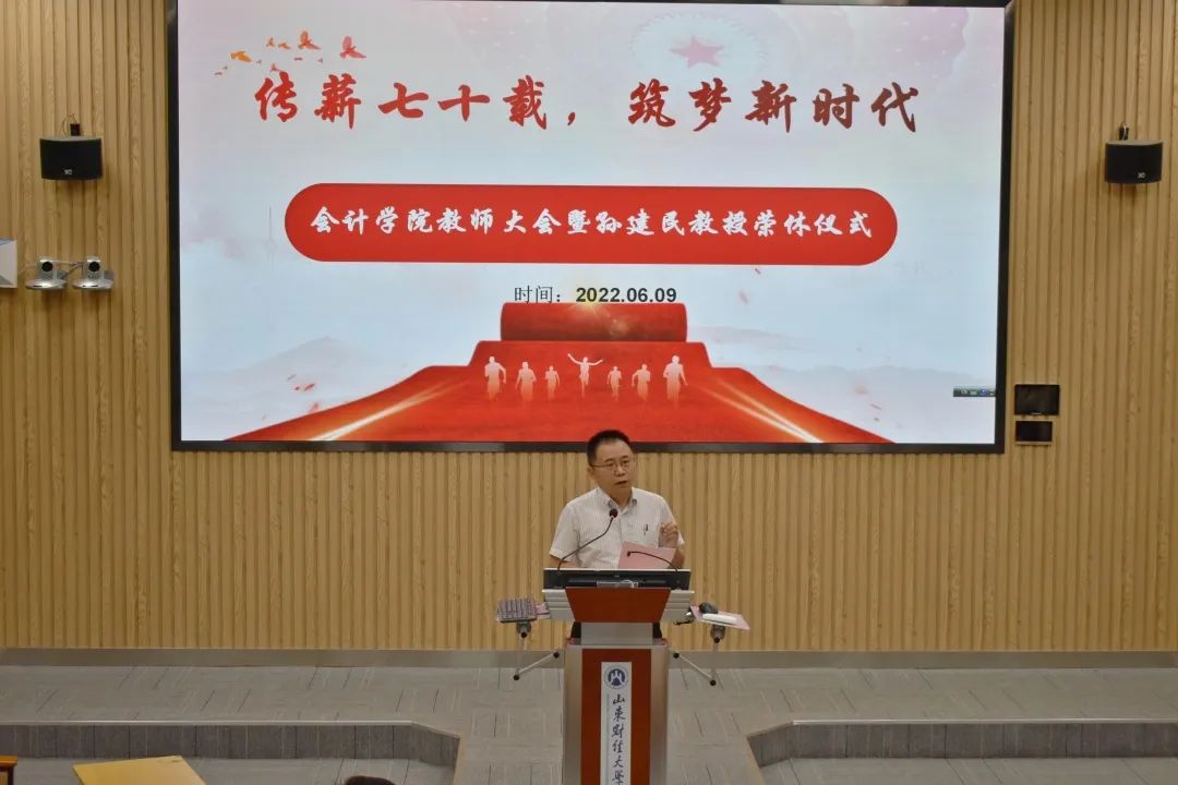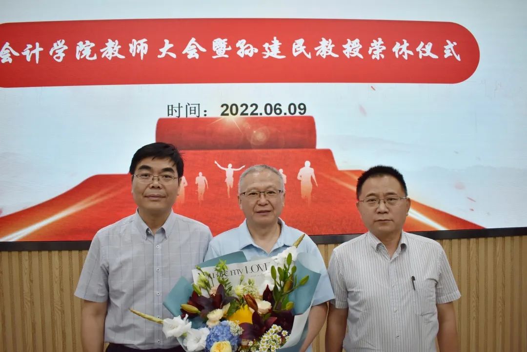 春风化雨数十载,一生描绘教育梦。党委书记邵文涛表示孙建民教授把青春留在岁月深处,把责任捧在手心,为MG电子 教育事业不懈努力,光荣退休。副院长刘惠萍为孙教授送上鲜花,表达对教师崇高的敬意。随后,退休教师精彩发言,回顾在山财大工作的时光,表达了对学院举办荣休仪式的感谢,以及对学校、同事们的感激与不舍。