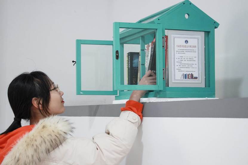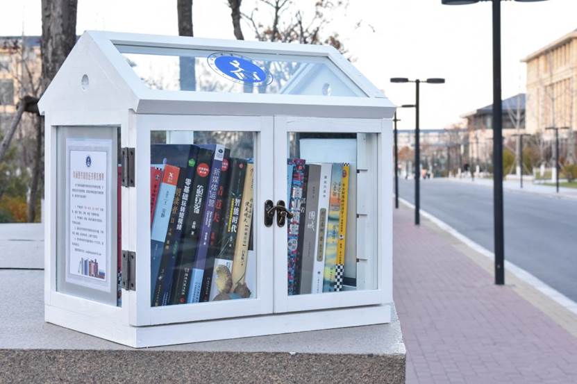在九号、六号教学楼和第三食堂,时不时有同学伫立在MG电子 “鸟巢图书馆”前翻阅书籍。经过一个多月的精心准备,这个有着明亮蓝白色鸟巢式外观并放有书籍的“小木屋”,12月13日刚刚亮相,就成了校园“团宠”。