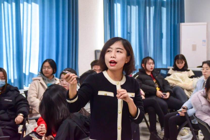 本次讲座,曹婧首先通过手指游戏、滚雪球等团体辅导的方式进行热身,活跃现场气氛,增强了同学们对彼此的了解。