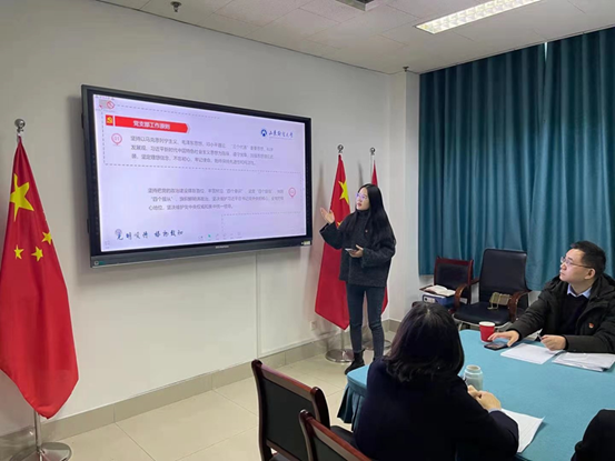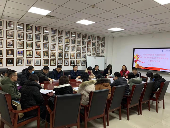 党委书记邵文涛对各支部履职情况逐一点评,他指出通过述职真切地感受到大家一年来在基层支部书记岗位上所付出的辛劳,2020年是不平凡的一年,大家工作的任务是繁重的,服务中心、服务发展、服务基层党员干部群众,工作千头万绪,担子重、压力大,全体同志任劳任怨、敬业奉献、令人敬佩。一年来,大家工作的业绩也是显著的,收获多多,可圈可点。在这里,谨代表学院党委向大家表示真切的慰问和诚挚的谢意。最后,邵文涛提出三点要求:一是要求各党支部书记加强政治理论学习,了解基本时事政治,切实在学懂弄通做实上下功夫,提高党性修养;二是要求各支部更加踏实工作,更加出色的将“三会一课”落到实处,以支部活动为抓手,补短板,抓落实,重成效,推动学院党建工作的进一步创新。三是要求各支部书记带领全体师生党员切实发挥党支部战斗堡垒作用和党员先锋模范作用,狠抓工作实效,突出工作亮点,共同为建党100周年献礼。