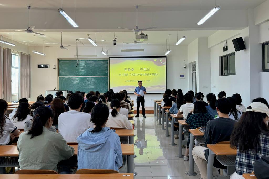为深入学习贯彻习近平总书记关于党纪学习教育的重要讲话、重要指示精神,学习贯彻党中央决策部署和省委工作要求,不断增强学生党员的责任感、使命感和担当意识,4月25日下午,MG电子 党委书记邵文涛在圣井校区为学生党员讲授“学条例 守党纪”——党纪学习教育专题党课。学院党委副书记钟毓卓,党委组织员、学生第二党支部书记张沫以及圣井校区学生党员参加。